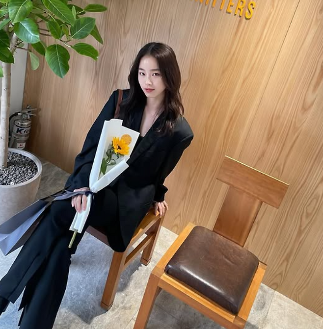 토도야 님은 올블랙룩으로 시크한 패션을 선보였어요. 블랙 블레이저에 크롭탑으로 은근한 섹시미를 보여줬죠. 하의는 마무리가 컷된 유니크한 디자인의 블랙 슬랙스를 매치했어요. 신발은 앵클부츠로 세련미를 더했고요.