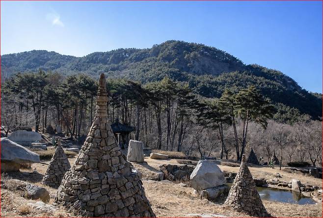 유가사 뒤편에는 중창 불사 과정에서 조성된 108기의 돌탑이 이어집니다. 하나하나 정성스레 쌓아 올린 돌탑은 겨울 햇살 아래에서 더욱 또렷한 윤곽을 드러내며, 기도의 흔적을 고요히 전합니다.
