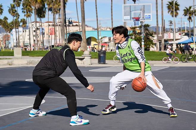 그러나 베니스비치까지 온 이유는 화보 촬영이 전부는 아니었다. 혼성팀으로 서로 3대3을 하는가 하면, 현지인들을 섭외해 친선전도 가졌다. 실력이 상당했다. 현직 모델 겸 강사로 활동 중인 신선재는 실제로 2019년 KBL 드래프트에 일반인 자격으로 도전한 적이 있을 정도. 빅맨 정두령은 길거리농구의 고수로 이미 점프볼에서도 몇 차례 소개된 적이 있다. 임강휘 역시 KUSF가 개최하는 클럽챔피언십을 비롯해 크고 작은 대회에서 에이스 역할을 훌륭히 해냈다. 한번은 내가 중계한 경기에서 부상에도 불구하고, 선수들 못지않은 열정을 불태워 모두를 감동시킨 적도 있다.