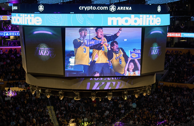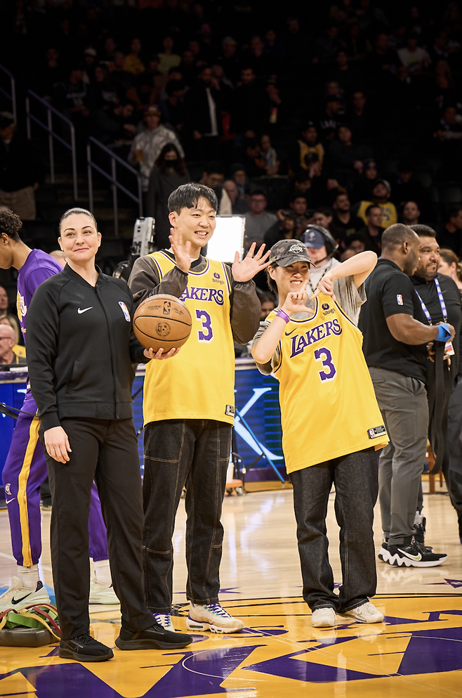 1981년부터 레이커스의 장내 아나운서로 활동해온 로렌스 텐터(Lawrence Tanter)가 직접 둘을 소개했다. 이 또한 엄청난 영광이었으리라. 그 흥분감이 가시기 전에 참가자들을 자리에서 일어나게 만든 순간이 또 찾아왔다. ‘댄스캠’ 이벤트 시간에 우리의 모습이 화면에 잡힌 것이다. 예상치 못한 타이밍에 대형 전광판에 모습이 담기자 일제히 일어나 환호했다. 열심히 저지를 흔들며 분위기에 도취됐다. 나 역시 1초 정도 화면에 잡혔는데, 오랫동안 취재를 해오면서 남들이 이벤트를 즐기는 장면만 바라보다가 직접 화면에 나오니 나도 모르게 흥분하여 소리를 질러댔다.