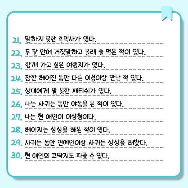 서로에게 긴장감을 주게 하는 커플 진실게임