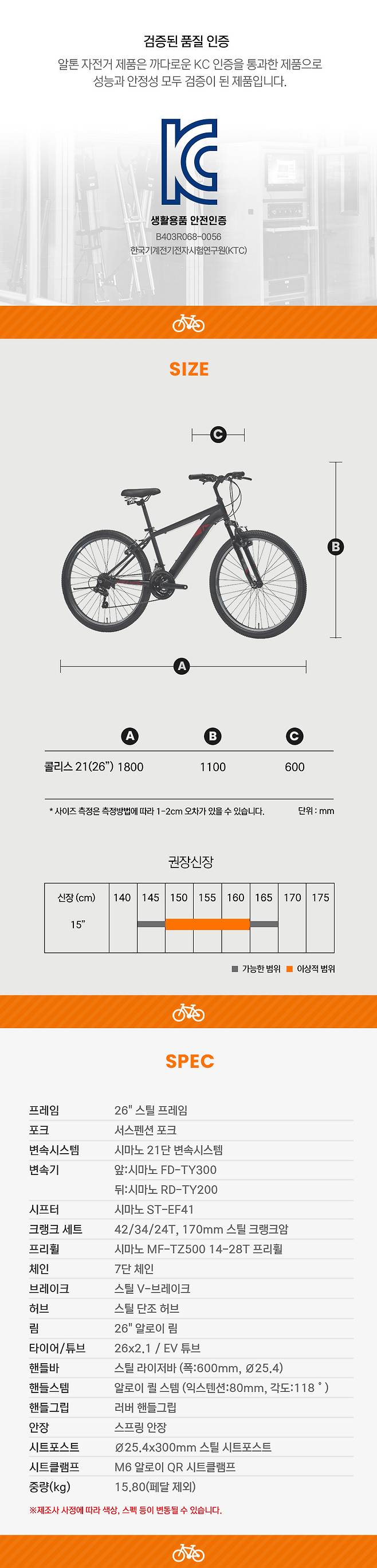 2025 알톤 콜리스 시마노 21단 26인치 출퇴근용 생활형 MTB 자전거