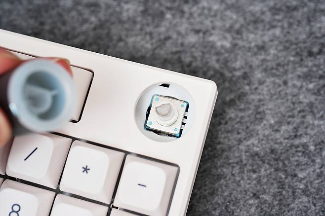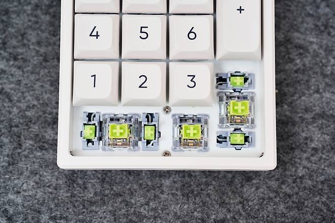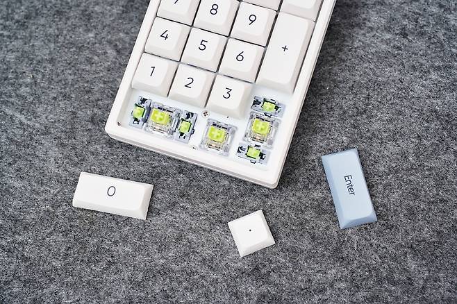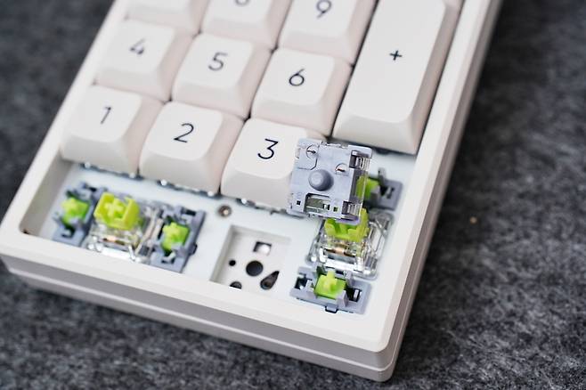 스위치 자체는 핫스왑이 가능해 향후 타건감을 바꾸고 싶을 때 손쉽게 교체할 수 있다는 점도 장점입니다. 일반적인 보급형 넘버패드는 이 부분이 거의 불가능한 구조이기 때문에, 기계식 키패드를 선호하는 사용자에게는 적합한 무선넘버패드라고 생각합니다.