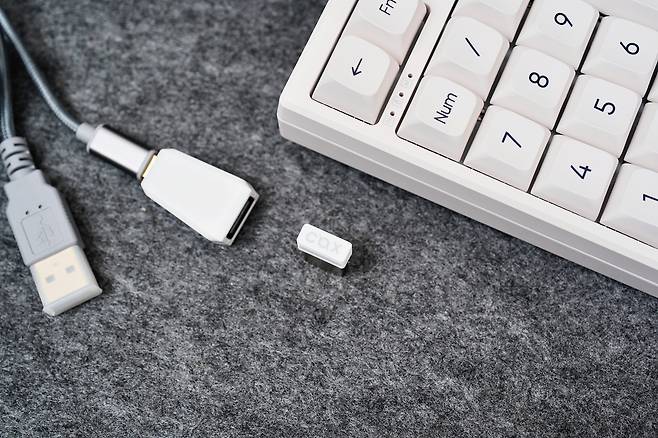 무엇보다 무선 넘버패드라는 점이 큰 장점이었습니다. 유선, 2.4GHz USB 리시버, 블루투스까지 총 3가지 연결 방식을 지원하는 3모드 넘버패드로서, 노트북이나 태블릿과도 연동해 다양한 환경에서 사용할 수 있습니다.