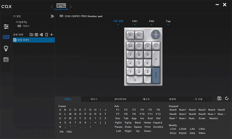 ABKO 홈페이지에서 CKP01 PRO 소프트웨어를 다운받으면 키맵핑부터 여러가지 기능들을 편집할 수 있습니다. 개인적으로 제일 마음에 드는 점이 FN 조합키들을 설정할 수 있어서 상황에 맞는 매크로를 등록 해 두거나 다이얼버튼을 볼륨조절 이외에도 왼쪽,오른쪽 회전 및 클릭했을 때에도 다른 작동키들을 등록할 수 있습니다.