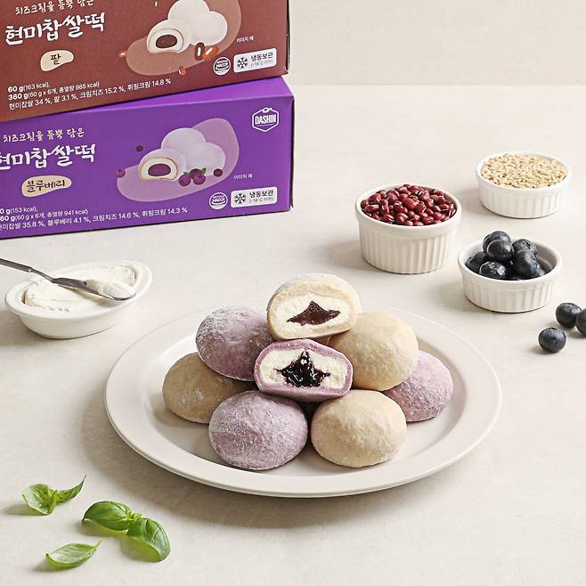다신샵 '현미찹쌀떡'은 '블루베리'와 '팥'맛으로 구성되어 있는데요. 팥의 경우, 팥의 진하고 달콤한 맛을 좋아하는 분들이 드시기에 딱 좋아요. 팥앙금과 크림치즈의 환상적인 맛조합을 느껴보고 싶다면 강추해요!