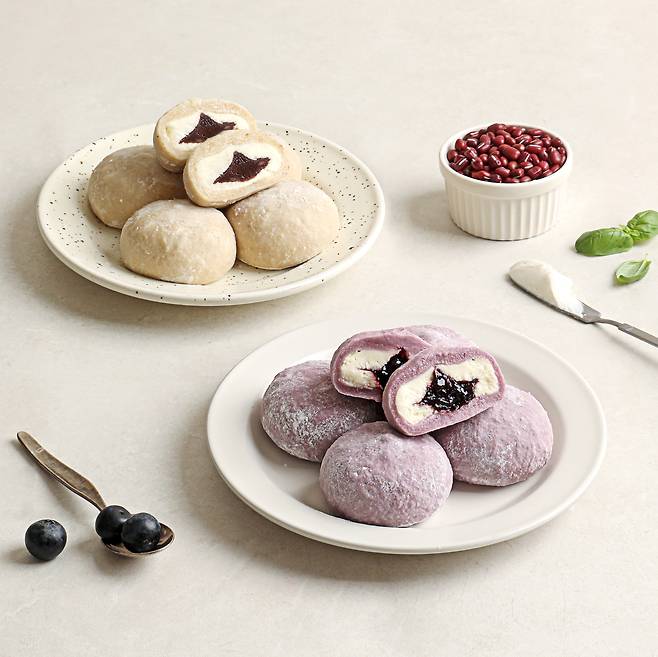 블루베리 맛의 경우, 보라색 과즙에서 블루베리의 상콤달콤한 맛이 느껴지며, 크림치즈와도 잘 어울린답니다.