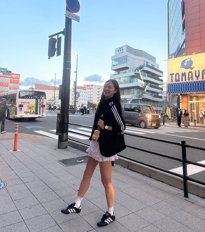 #송해나 #송해나패션 #송해나아디다스 #아디다스트랙탑 #애슬레저룩 #믹스매치코디 #꾸안꾸스타일 #가을코디추천 #스포티룩 #러플스커트 #스타패션