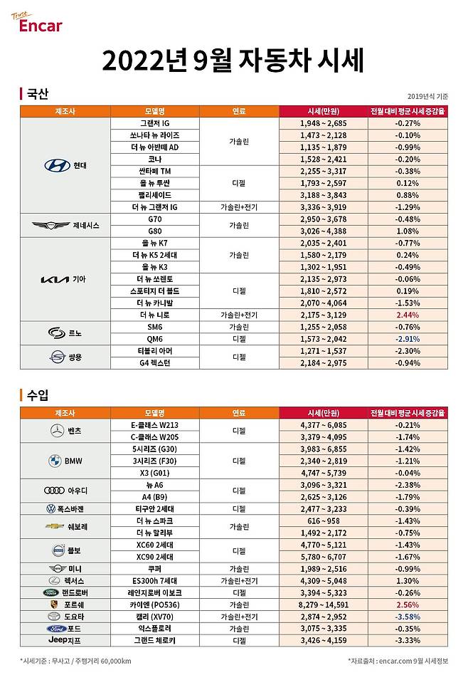 국산차 시세 변동 현황
