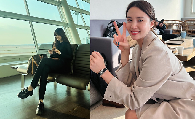 공항에서 포착된 진아름은 블랙 슬림핏 팬츠와 청키 로퍼로 모던한 스타일을 완성했다. 루이비통 더플백을 매치하여 럭셔리한 감성을 더했으며, 단정한 헤어스타일로 세련미를 강조했다.