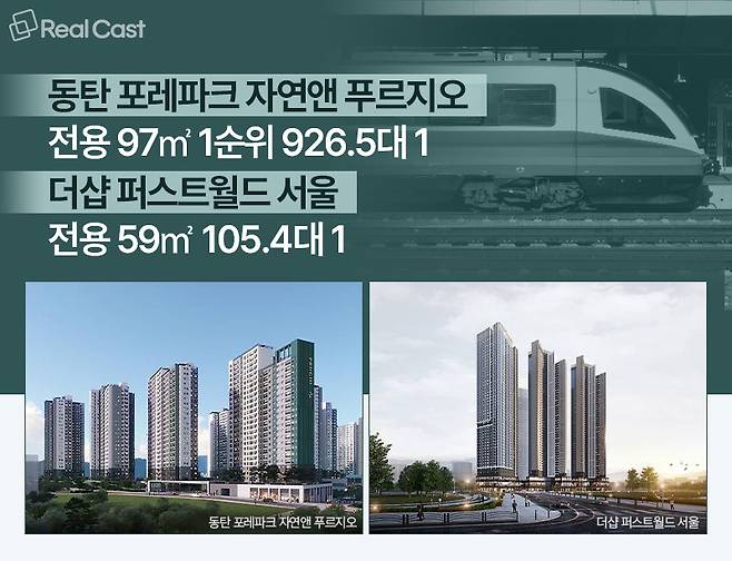 이렇듯 교통 호재가 뒷받침되는 지역은 수요가 집중되면서 청약 시장에서도 경쟁이 치열한 모습을 보입니다. 한국부동산원 청약홈에 따르면, 5월 분양한 '동탄 포레파크 자연앤 푸르지오' 국민·민영주택 634가구 모집에 4만3,547명이 청약했습니다. ‘동탄 꿈의숲 자연앤 데시앙’도 294가구 모집에 1만1,136명이 접수했고, 특별공급 청약 접수까지 합하면 이틀 동안 두 아파트에 7만여 명이 몰렸습니다. 동탄트램, 분당선 연장 추진 외에도 지역 내 GTX 개통 호재가 높은 청약경쟁률을 이끌어 낸 것으로 분석됩니다.