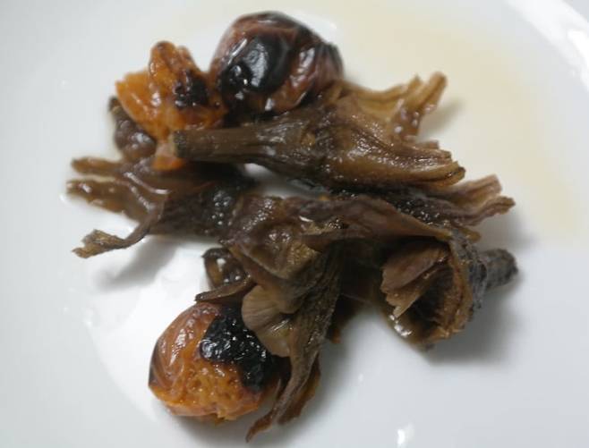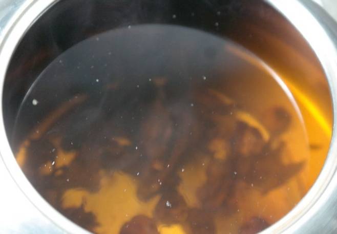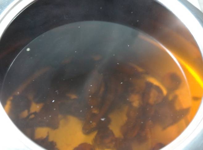 4. 끓이기: 볶은 가지 꼭지를 물에 넣고 끓입니다. 물의 양은 취향에 따라 조절합니다.