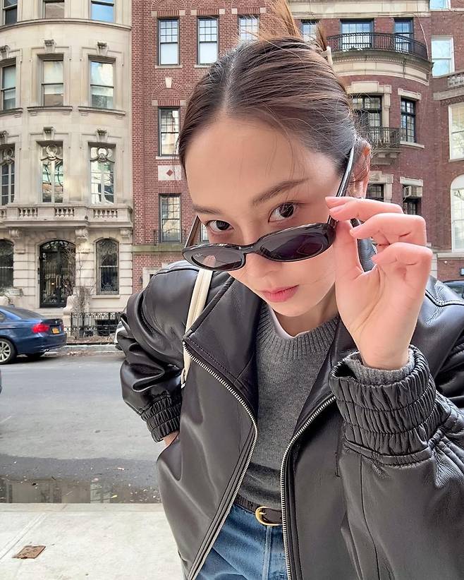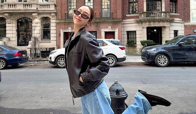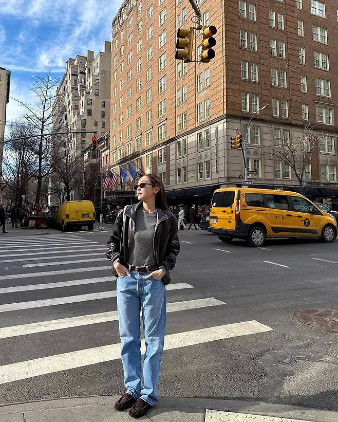 뉴욕의 거리 위, 제시카는 단 하나의 아우터만으로 완벽한 분위기를 만들어냈다. 클래식한 블랙 가죽 재킷. 여기에 깔끔한 데님 팬츠와 심플한 그레이 니트, 그리고 블랙 슈즈로 마무리한 스타일링은 뉴요커 특유의 시크한 감성을 담고 있다.