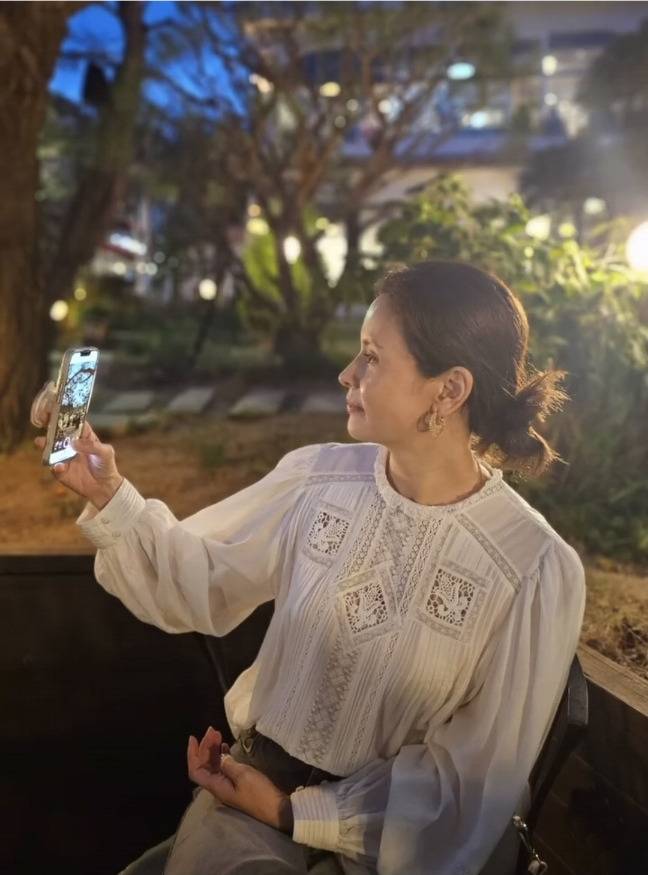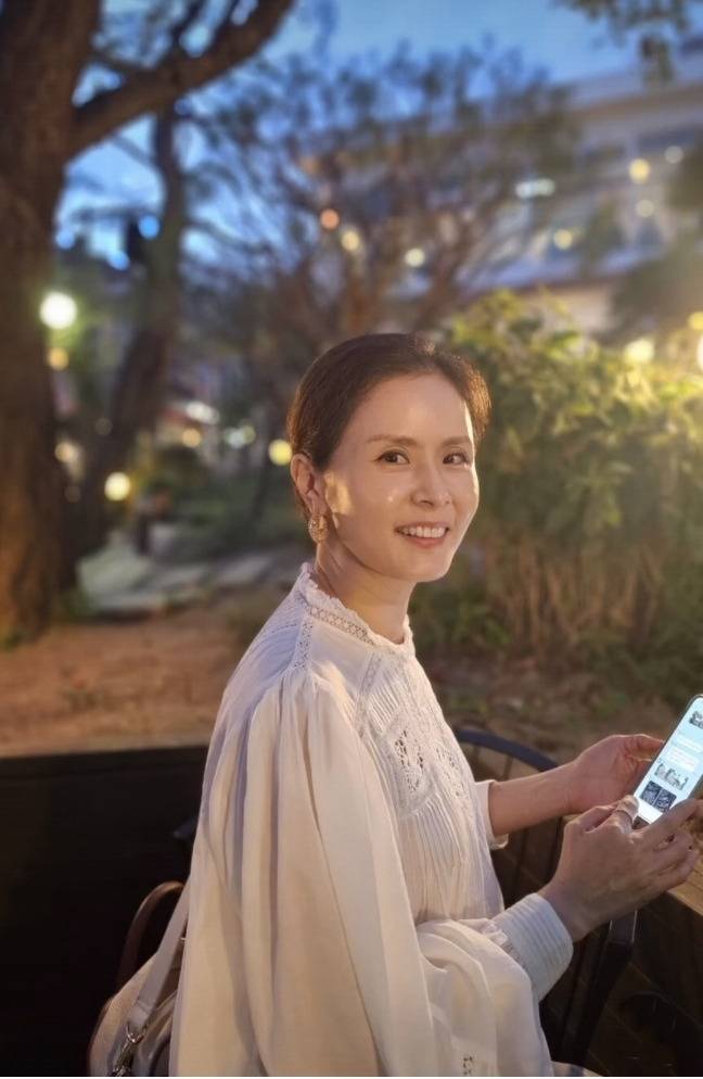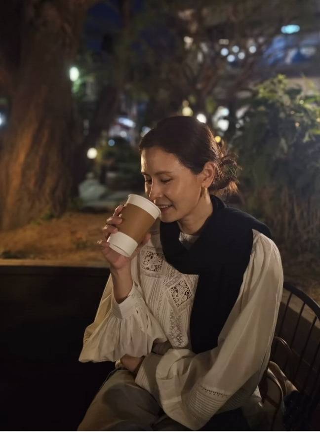임채원은 풍성한 셔링과 섬세한 레이스 디테일이 어우러진 화이트 블라우스를 선택해 얼굴을 밝혀주는 동시에 고급스러운 분위기를 자아냈습니다.