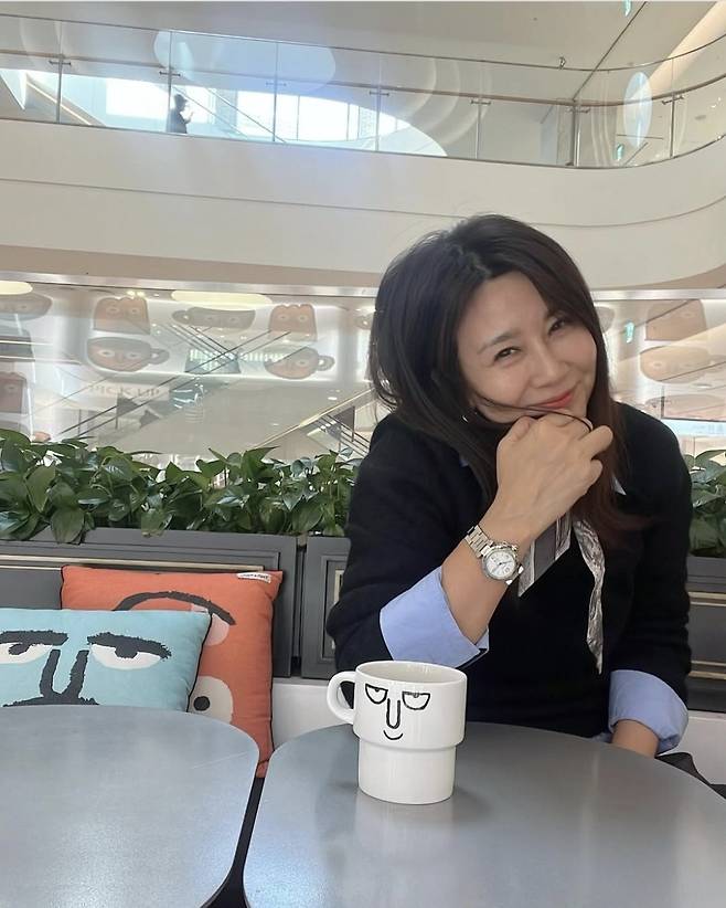 양정아는 하늘색 셔츠 위에 블랙 니트를 레이어드해 스타일리시하고 세련된 패션을 선보였습니다.