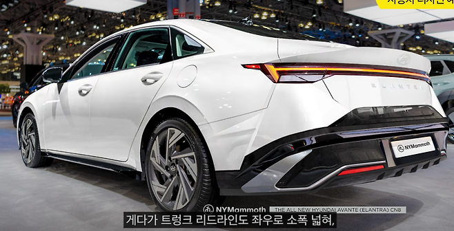 후면부 역시 놀랍다. 그랜저와 유사한 픽셀 타입 일자형 테일램프와 H자형 그래픽이 적용되며, 고급스러운 분위기를 자아낸다. 하단 디퓨저와 듀얼 머플러는 스포티한 이미지를 강화하며, 기존 아반떼에서 상상하기 어려웠던 프리미엄 세단의 느낌을 연출한다. 사실상 수입 C세그먼트 세단과 비교해도 전혀 밀리지 않는 디자인이다.