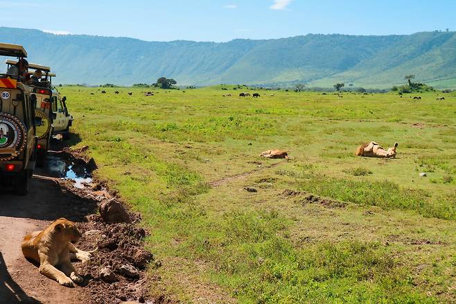 그리고 우리의 오늘 목적지는 세렝게티 초원이 아닌 응고롱고 분화구. 세계 최대 칼데라 분화구인 이곳엔 ‘사파리 빅5’라고 불리는 사자, 코끼리, 표범, 코뿔소, 버팔로를 포함해 수많은 야생동물이 서식한다. 우리는 이날 자연의 은혜, 혹은 바분 원숭이의 액땜인지는 몰라도 표범을 제외한 유명 동물들은 다 만나 볼 수 있었다.