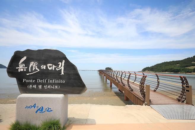 무한대(∞)를 내포하는 8월 8일 섬의 날을 기념하고, 섬과 섬 사이를 연결함으로써 신안의 지속적인 발전을 희망한다는 의미를 담은 무한의 다리 이름은 이탈리아에서 활동하는 박은선 조각가가 깊은 뜻을 담아 붙여진 걸로 전해집니다.