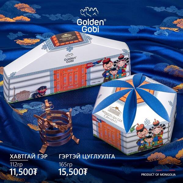 몽골 여행 기념품으로 가장 먼저 추천드리는 골든고비 초콜릿입니다. 몽골에서 가장 유명한 초콜릿 브랜드인데요. 밀크 초콜릿과 다크 초콜릿 어떤 맛을 먹어도 부드럽지만 과하지 않은 달달함이 느껴집니다. 골든고비 초콜릿은 선물하기 좋게 게르모양의 틴케이스, 일반 박스케이스 등 다양한 구성으로 상품이 진열되어 있습니다.