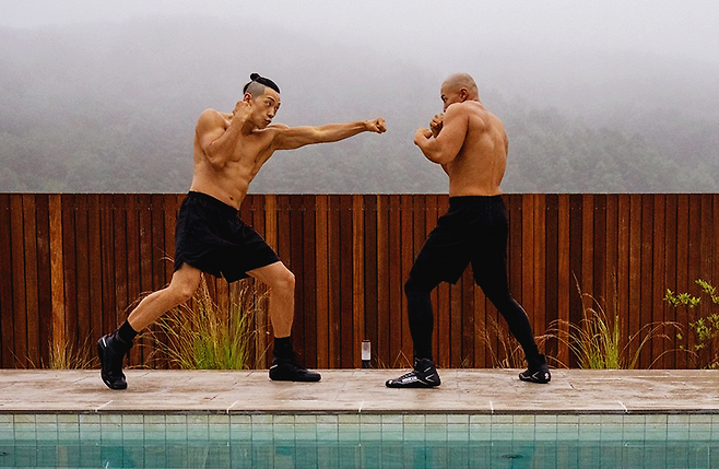 또 다른 사진 속 우진과 태검(황찬성)의 일촉즉발 일대일 매치는 긴장감을 폭발시킨다. 건우의 복싱 코치로 새로운 삶을 시작한 우진은 특유의 빠른 발을 활용한 영리한 속도전을 무기로 하는 인물. 우진을 “상대의 빈틈을 끊임없이 두드리며 기회를 만들어내는 타입의 파이터”라고 소개한 정성호 무술 감독은 “상대의 리듬을 읽고 흐름을 빼앗는 감각적인 풋워크와 속도감에서 오는 날카로운 연타가 인상적이다.