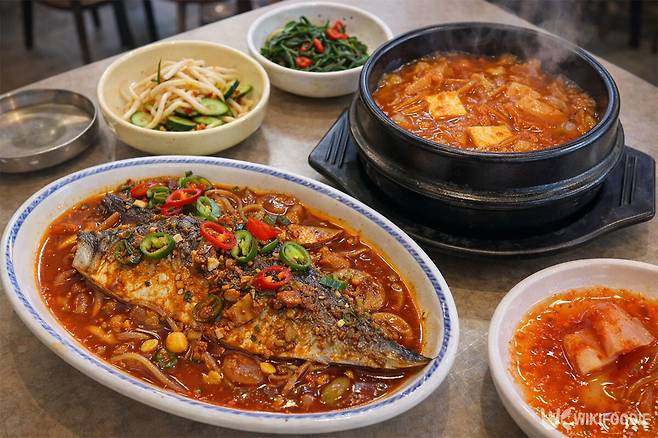 대표 메뉴인 생선구이 정식은 1인 1만 3000원으로, 바싹하게 구워낸 생선과 정갈한 밑반찬이 한 상 가득 차려진다. 특히 정식에 함께 나오는 김치찌개는 이 집의 '숨은 강자'로 꼽힐 만큼 깊은 맛을 자랑하며, 밥도둑 역할을 톡톡히 한다.