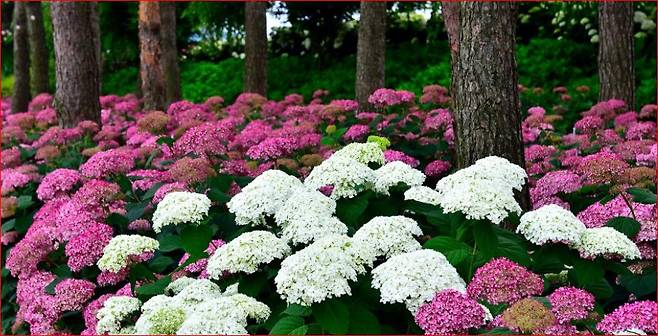 무엇보다도 토양의 산성도에 따라 꽃의 색이 달라지는 수국 특성상, 걷는 위치에 따라 색이 조금씩 바뀌는 ‘살아있는 정원’을 만날 수 있다는 것이 특별한 매력입니다.