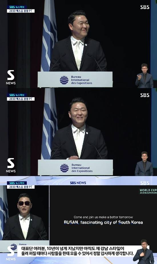 10년이 흘러도 '강남스타일'로 사람들을 한데 모을 수 있어서 감사하다는 싸이는 "이처럼 부산 세계박람회도 그렇게 해줄 거라고 생각한다. 우리를 한데 모으고 보다 나은 미래를 만들 것"이라고 전했다.