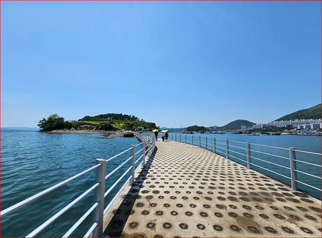 장도로 향하는 진섬다리는 바다 위를 걷는 듯한 느낌을 주는 보행 전용 다리입니다. 335m 길이의 이 다리는 물때에 따라 일부 시간에는 잠기기도 하지만, 대부분의 낮 시간에는 자유롭게 통행 가능합니다.무엇보다 이 다리는 단순한 연결로가 아니라, 여수 바다의 풍경을 오롯이 체험할 수 있는 해상 산책로입니다. 해무가 낀 날에는 신비롭고, 맑은 날에는 바다와 하늘이 맞닿은 풍경이 감탄을 자아냅니다.