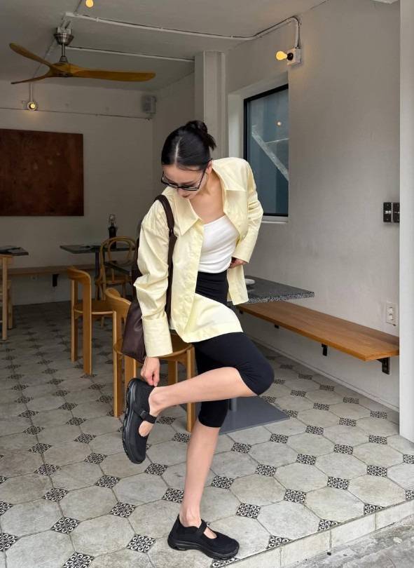 블랙 바이커 쇼츠의 조합.