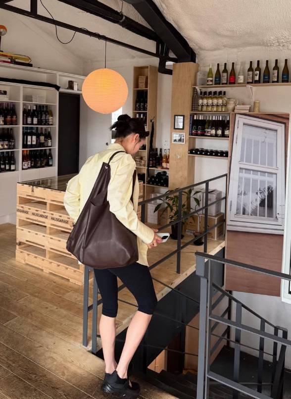 거기에 넉넉한 브라운 숄더백과