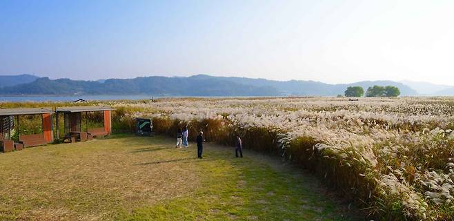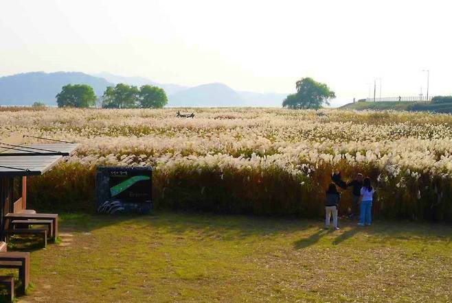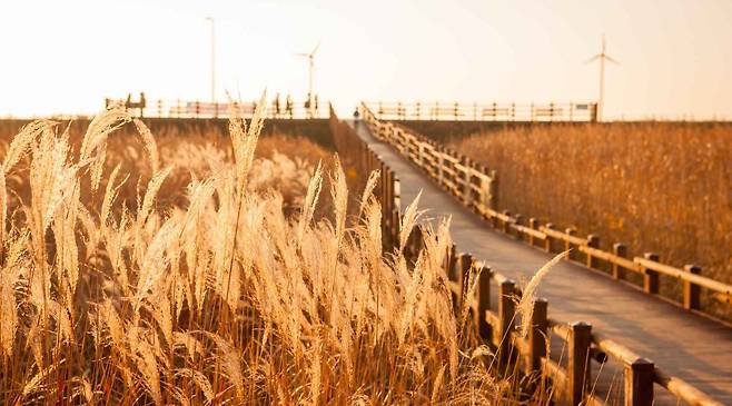 갈대숲 산책길은 누구나 부담 없이 걸을 수 있도록 잘 정비되어 있다. 강둑에 올라서면 갈대밭 전체가 한눈에 들어오는데, 마치 하늘 위 구름 위에 서 있는 듯한 착각을 불러일으킨다.