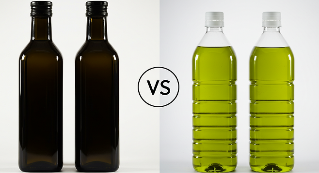 투명한 플라스틱 병은 피하세요 (빛과 공기로 품질이 쉽게 나빠져요)