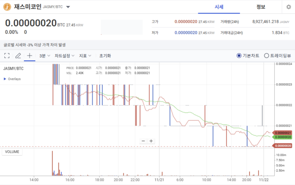 코인마켓캡에 따르면 재스키코인의 총 매장량은 500억개이며, 약 49억3900만개의 코인이 유통 중이다.