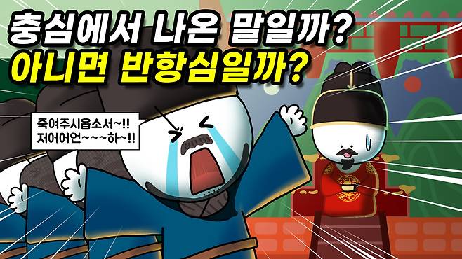 그런데 이들 표현 외에도 사극에서 자주 등장하는 표현이 "죽여주시옵소서. 전하"입니다. 주로 임금에게 직언할 때나 진짜 잘못한 일이 있을 때 사용하는데, 이 표현에 내포된 진짜 의미는 상황에 따라 다르긴 해도 진짜 죽여달라는 의미는 아닙니다.