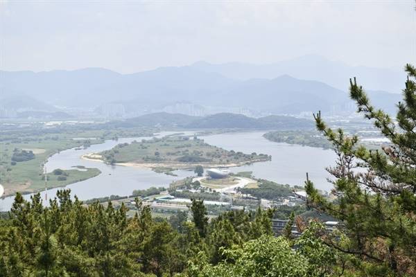 | ▲ 달성습지 전경. 정면으로 보이는 왼쪽이 낙동강, 오른쪽이 금호강이다. |