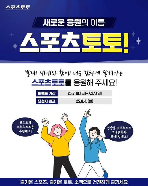 새로운 응원의 이름, 스포츠토토. 공식 인스타그램에서 발매 재개를 축하하는 특별한 이벤트에 참여하세요.