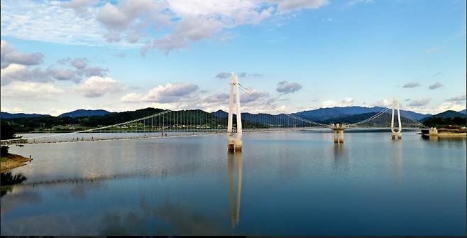 - 다리 위에서 바라보는 탑정호 파노라마 뷰
