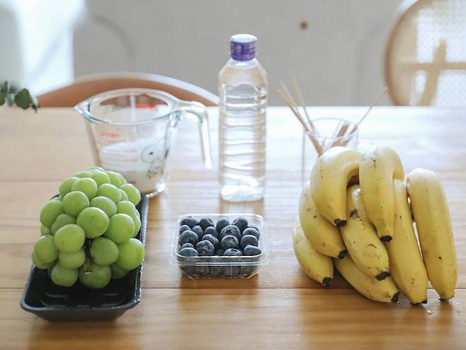 탕후루를 만들 과일은 단단한 식감의 과일을 준비하는 것이 좋아요. 저는 처음에 멋모르고 사진처럼 바나나를 준비했지만 초보라면 망칠 수 있으니 단단한 과일이 좋습니다.
