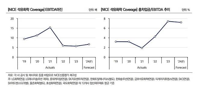 불어난 설비투자에 따른 차입금 부담도 상당하다. 나이스신용평가에 따르면 올해 주요 석유화학사 12곳의 합산 설비투자(CAPEX) 규모는 12조원에 달했다. 설비투자금 마련을 위해 차입금이 큰 폭 불어날 전망이다.