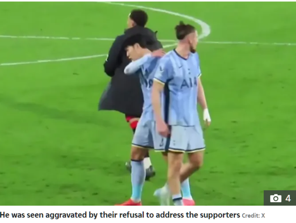 영국 매체 '더 선'은 6일(한국시간) "손흥민은 팀 동료들에게 토트넘 팬들을 향해 인사를 하러 가라고 촉구했다. 그는 선수들이 팬들을 향한 인사를 거부하는 것에 대해 분노하는 것처럼 보였다. 그러나 결국 선수들을 원정석 쪽으로 보냈고, 팬들에게 박수를 보냈다"며 상황을 설명했다.
