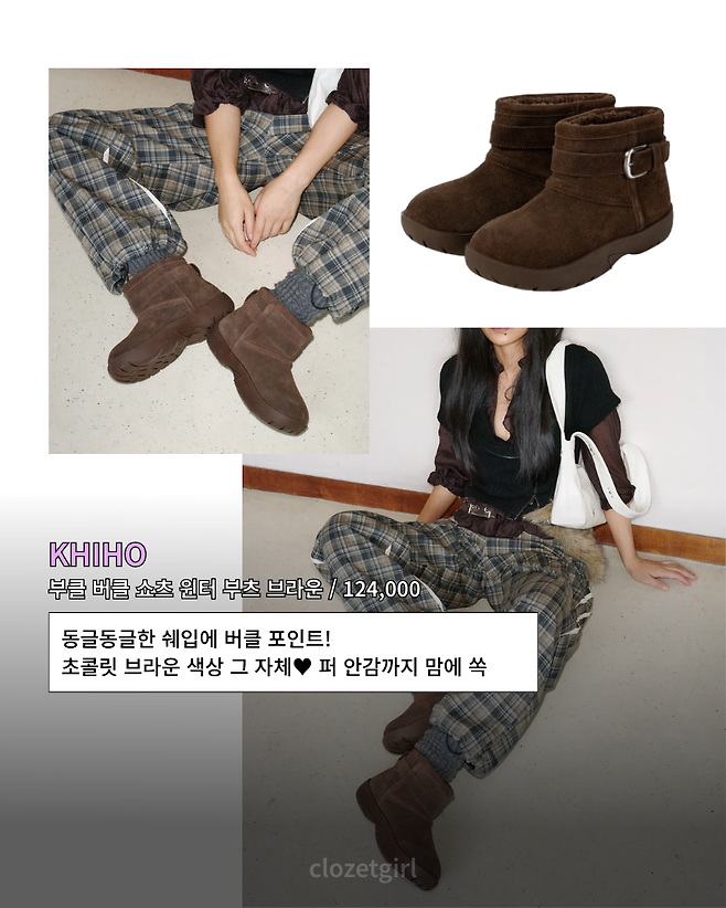 부클 버클 쇼츠 윈터 부츠 브라운 / 124,000