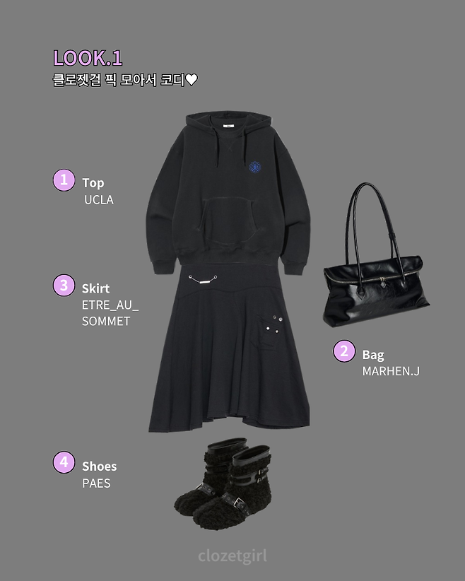 UCLA 후드와 에트오소메 스커트