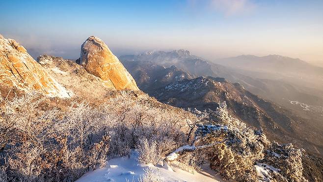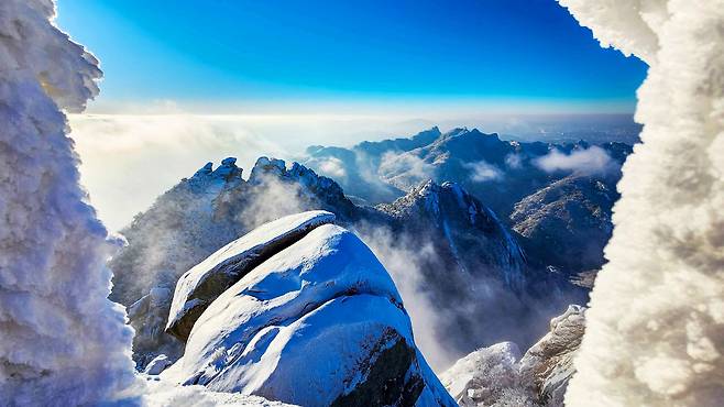 설경 속 백운대에서 내려다보는 서울, 사모바위의 감성적 실루엣, 숨은벽능선의 압도적 풍광. 이 겨울, 도심에서 시작하는 웅장한 자연의 여정을 북한산에서 만나보세요. 🌨️