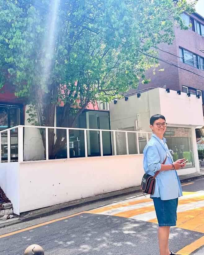 반면 인교진은 하늘색 셔츠와 네이비 반바지로 캐주얼한 매력을 발산했다. 여기에 브라운톤 크로스백과 뿔테 안경으로 스타일을 마무리하며 편안하면서도 댄디한 감성을 담았다.