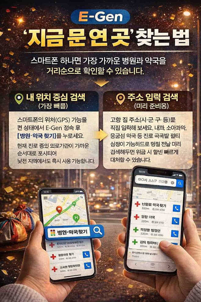 E-Gen으로 ‘지금 문 연 병원·약국’ 찾는 방법
