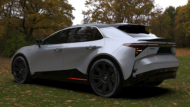 한편, 최근 공개된 2026년형 GR 코롤라 렌더링의 주요 특징으로는 대형 라디에이터 그릴, 유광 검은색 인서트가 적용된 거대한 범퍼, 붉은색 포인트, 고급스러운 오목형 검은색 알로이 휠이 눈에 띈다. 외장 색상은 은색과 검은색의 투톤으로 구성되었으며, 트렁크와 루프에 스포일러를 장착한 가파른 후면 디자인이 역동성을 더했다.