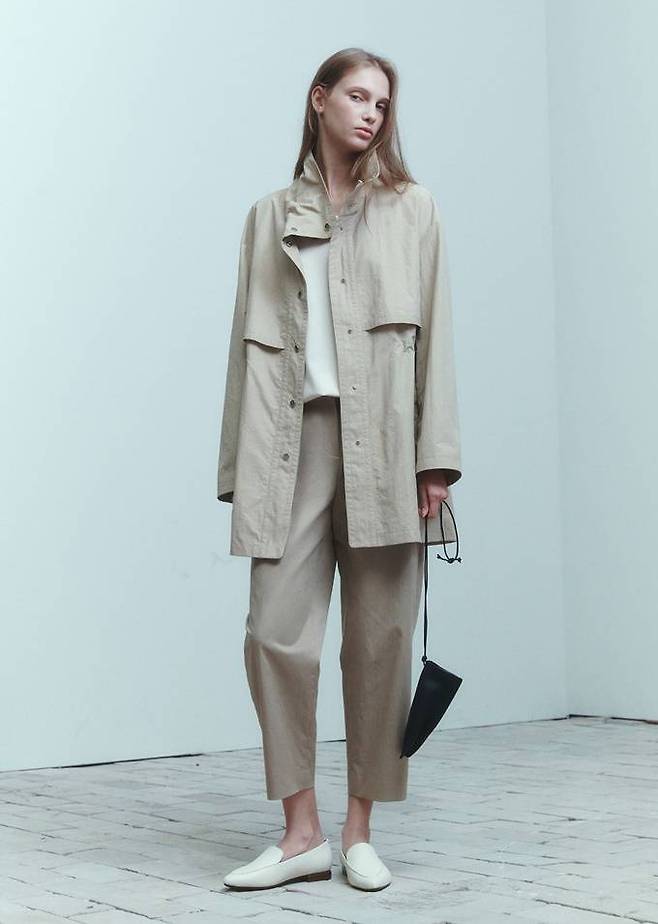 이태리 코튼, 나일론 혼방 소재를 사용한 실용적인 아이템으로 클래식하면서 멋스러운 연출이 가능한 아이템으로 간절기룩 만능템으로 인기를 끌고 있다.