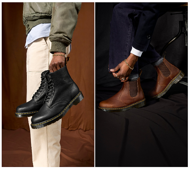 바로 영국 컬처 패션 브랜드 닥터마틴이 기존 오리지널 1460과 2976 첼시 부츠 실루엣을 새로운 앰버서더 가죽으로 재설계해 새로운 모습으로 출시했다고 합니다!