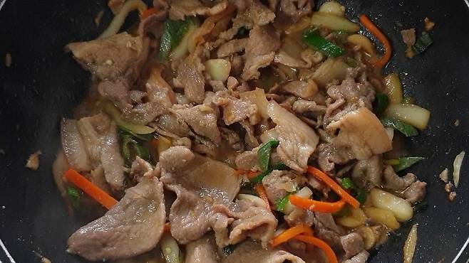 너무 맛있는 간장제육볶음 완성이에요