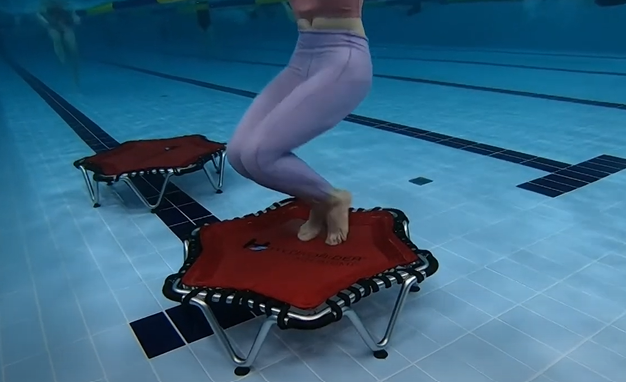 일명 ‘방방’이라고 불리는 트램펄린(스프링 달린 육각형 모양의 매트)도 수중에서 즐길 수 있다. ‘아쿠아 점프(Aqua jump)’는 수영장에 설치된 트램펄린의 탄성을 이용해 뛰는 동작을 반복하는 운동이다. 신나는 음악에 맞춰 다양한 동작을 변형해 진행한다. 칼로리 소모가 높고 쉽게 따라 할 수 있어 중년층에게 인기가 높다.